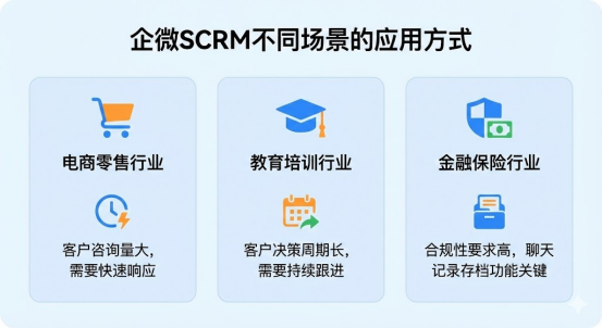 企微SCRM在不同行业有着针对性的应用策略,以下是三个典型场景的实践方法。