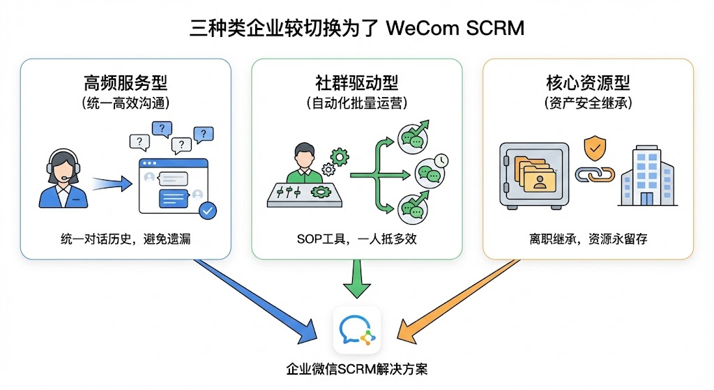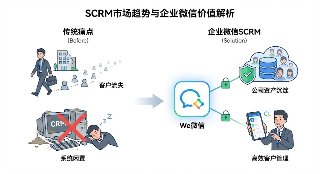 2024年SCRM市场规模突破150亿元,企业微信解决方案占据45%份额且持续攀升。从教培机构的家校沟通到零售品牌的会员运营,为什么大家都在往企业微信这个方向走?本文拆解12亿用户池的真实价值,帮你看清什么情况适合切换到企业微信SCRM。很多老板都遇到过这个困境:销售辛苦积累的客户资源,员工一离职就成了"个人资产"带走,公司只能从零开始。或者花大钱上线CRM系统,结果销售嫌麻烦不愿意录入,系统成了摆设。这些痛点集中指向一个核心问题——客户关系到底该怎么管?