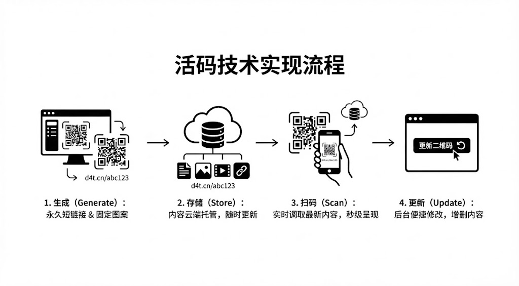 印刷好的二维码还能改内容?活码技术通过"码"与"内容"分离设计,让固定的二维码图案指向可更新的云端内容。本文拆解活码的底层实现逻辑,对比静态码的本质差异,帮你理解这项技术如何降低运营成本、提升推广灵活性。
