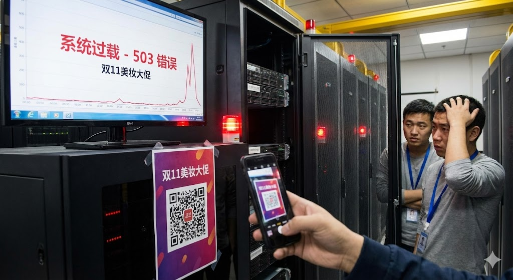 去年双11,某美妆品牌在线下投放了一批活码海报。凌晨0点促销开始,5分钟内涌入8万次扫码请求——系统直接卡死,用户扫码后要等30秒才能跳转,最后错失了一半流量。这个案例暴露了一个核心问题:活码看起来只是个二维码,但背后要处理的是"海量并发+实时分流+数据统计"的复杂链路。流量突然爆发时,架构的短板会被无限放大。