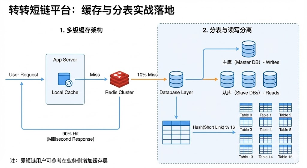 转转短链平台如何利用缓存与分表应对高并发?这套性能优化实战方案值得借鉴
