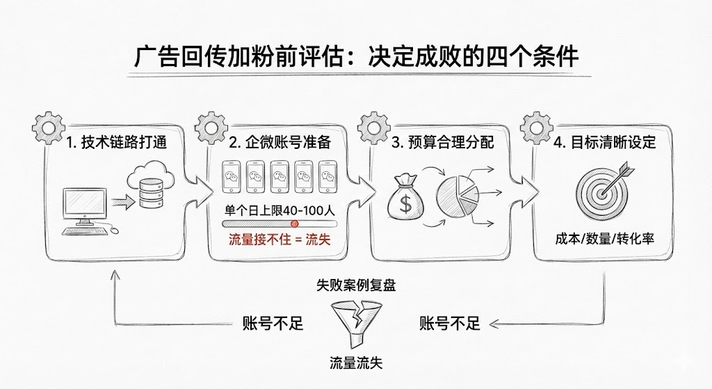 企业实施广告回传加粉前必须评估的四个前提条件(技术、组织、预算、目标)