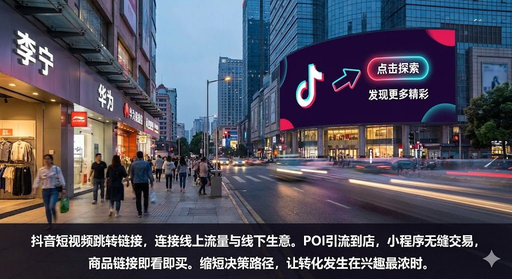 抖音的流量池很大,但用户刷视频的速度更快。一条视频可能只有3秒时间抓住注意力,如果不能在这短暂窗口期完成引导,用户就会滑走,流量白白浪费。越来越多商家开始在视频里添加跳转链接——POI地址能把线上流量导到线下门店,小程序可以直接承接交易,商品链接则让用户边看边买。这些跳转组件本质上是在缩短决策路径,让转化发生在用户兴趣最浓的那一刻。