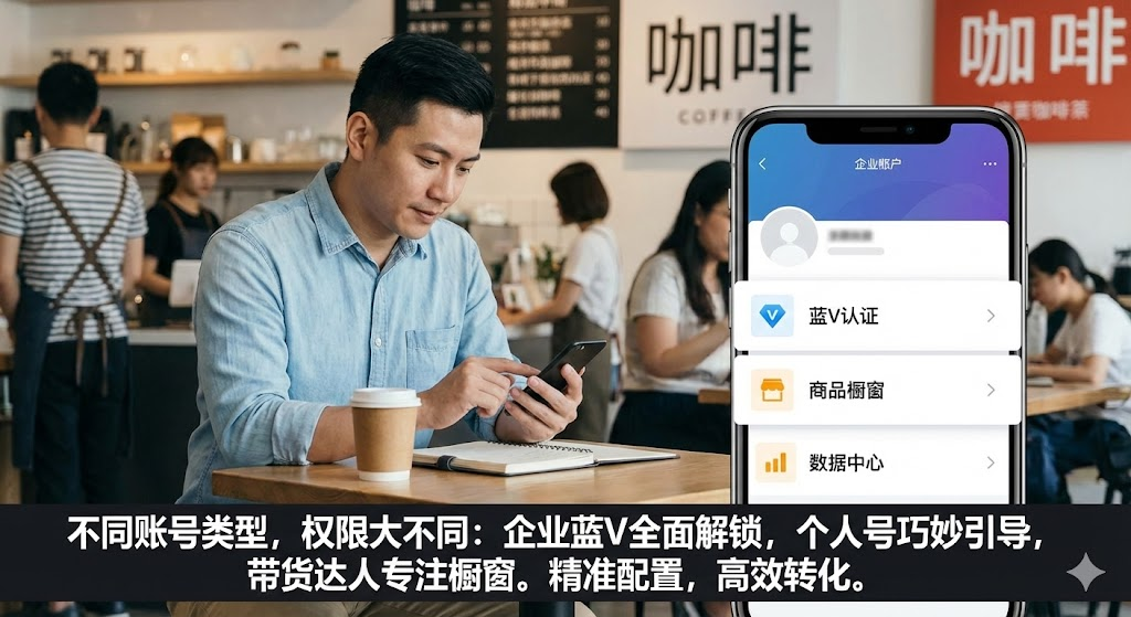 企业蓝V账号可以使用所有跳转功能——POI、小程序、商品链接都能挂载,而且可以自定义跳转样式,设置多个跳转目标。认证蓝V需要营业执照和对公账户,年费600元。如果是正规经营的商家或机构,这个投入值得,因为蓝V不仅解锁跳转功能,还能获得官方认证标识、私信自动回复、数据分析等权益。