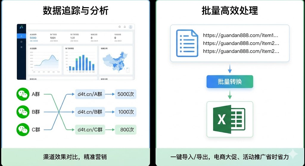 • 如果管理多个公众号或电商店铺,每天要分享几十条链接,一条条手动生成太费时间。有些平台支持批量导入,一次性把所有长链接转换成短链接,还能批量导出Excel表格。