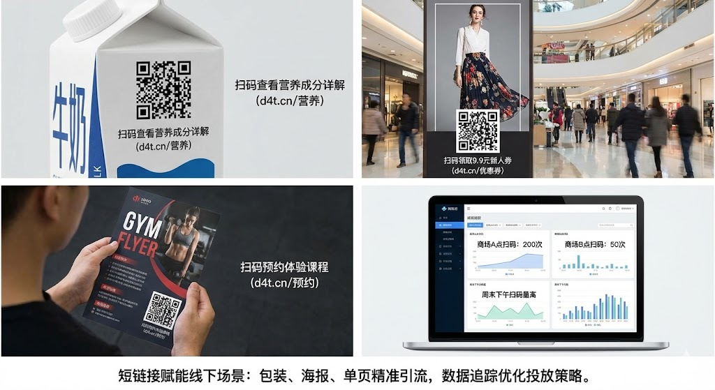 产品包装、海报、宣传单页上的二维码经常出现扫不上、链接失效的问题。短链接能压缩网址长度、简化二维码图案、支持后台更新跳转页面,让印刷物料的扫码转化率显著提升,还能避免内容调整后物料报废的损失。