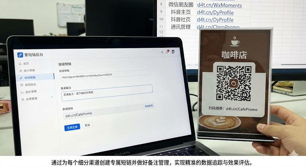 准备工作很简单,你要推广的落地页链接,以及你要投放的渠道清单。把落地页链接复制好,确认这个链接在手机和电脑上都能正常打开。链接太长?短链工具会自动压缩。列出你的投放渠道,比如微信(群聊、朋友圈、公众号)、抖音(评论、私信、主页)、小红书、百度广告、线下海报。每个具体位置都要分开列,因为同一个平台的不同位置,用户行为也不一样。