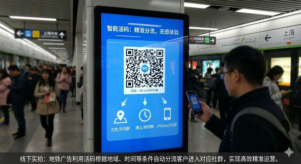 除了标签,活码还能根据客户所在地区、扫码设备、扫码时间段来分流。比如北京的客户自动进"华北区交流群",广东的客户进"华南区交流群";白天扫码的进"工作日咨询群",晚上扫码的进"晚间专属群"。这些条件可以叠加,实现更精细的分流逻辑,让每个客户都能进入最适合自己的社群。
