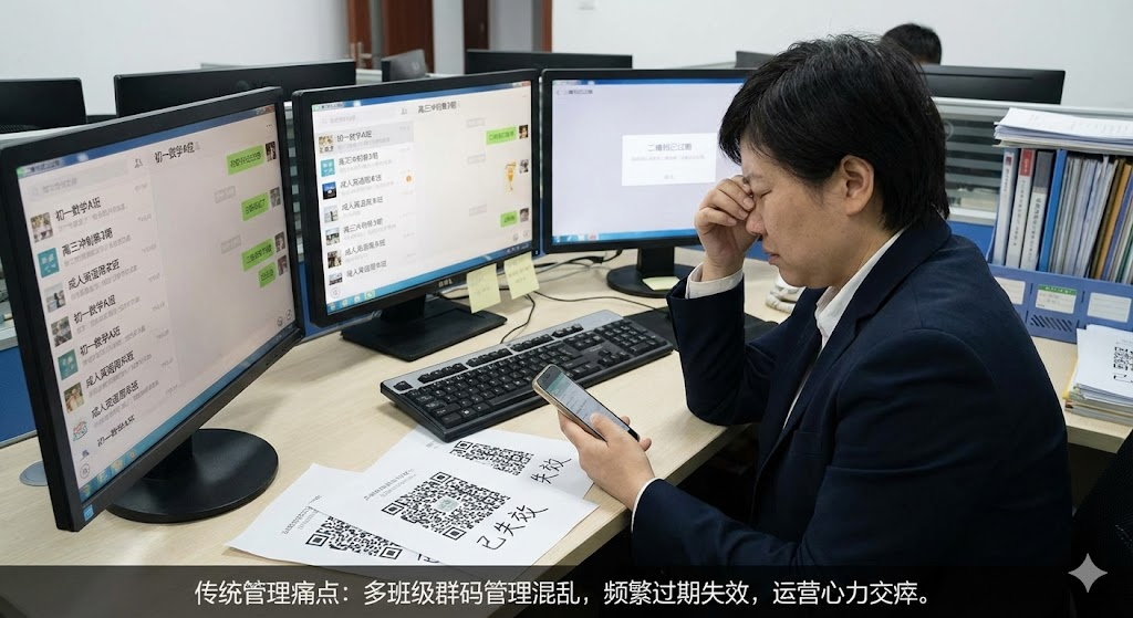 如果某个渠道忘记更新,学员扫码后发现无法入群,会直接影响转化率和口碑。这种重复性的维护工作占用了大量运营时间,却无法为学员体验带来实质性提升。