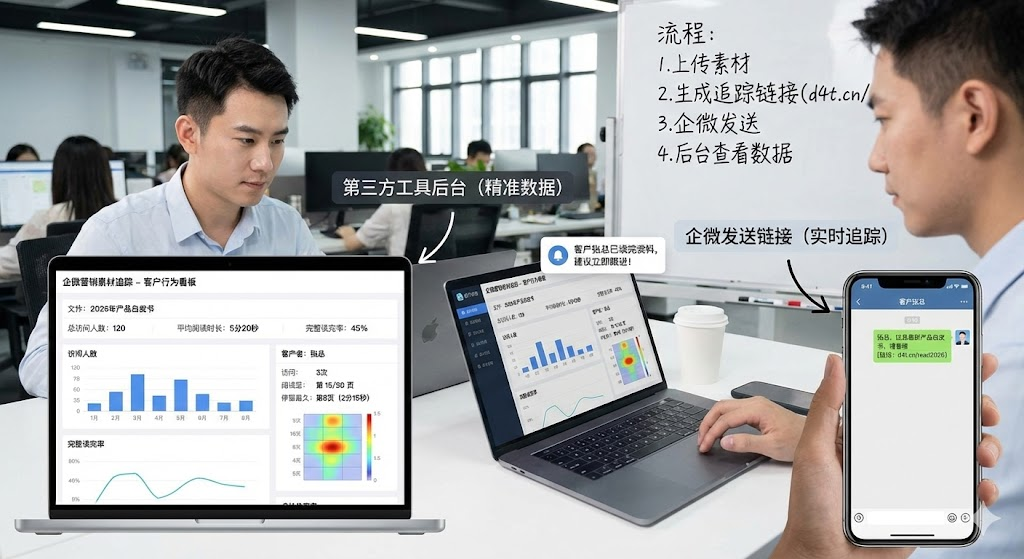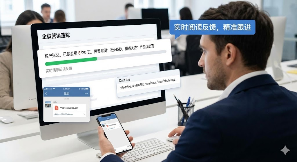 企业做营销推广时,最怕投入大量精力却得不到反馈。发出去的产品介绍、解决方案,客户到底看了没有?哪些内容引起了兴趣?这些问题长期困扰着销售团队。企微营销追踪功能的出现,让这些疑问有了答案。通过技术手段,企业可以清楚看到客户的阅读行为——翻到第几页、在哪个章节停留时间长、是否反复查看某个部分。这些数据为后续跟进提供了可靠依据,让每一次沟通都更有底气。