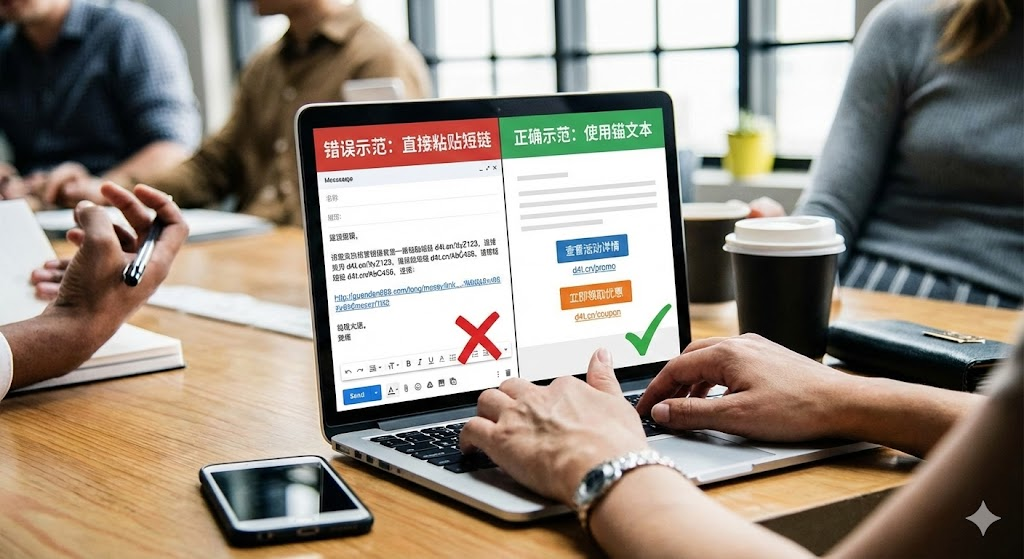 不要直接把短链接粘贴到邮件正文里。正确做法是使用邮件编辑器的"插入超链接"功能,把短链接绑定到有意义的锚文本上,比如"查看活动详情""立即领取优惠"这类描述性文字。锚文本的选择很关键,要让收件人一眼就知道点击后会看到什么内容,同时用行动导向的词汇激发点击欲望。如果邮件里需要放多个链接,要在排版上做好区分,可以用列表形式展示,每个链接配一句简短说明。