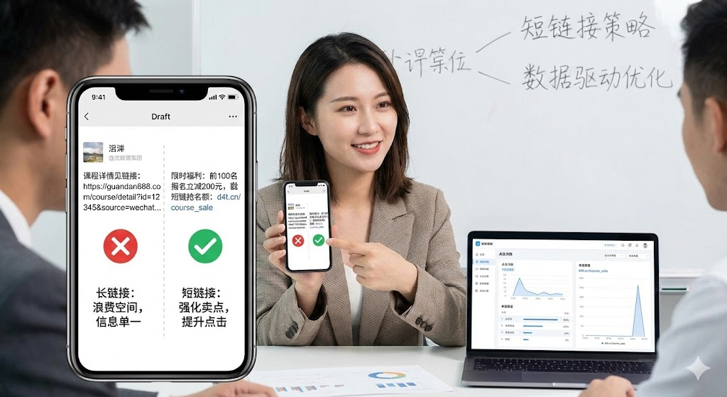 把长网址替换成短链接后,节省下来的空间能用来强化核心信息。比如做知识付费的运营者,原本只能写「课程详情见链接」,现在可以改成「限时福利:前100名报名立减200元,戳短链抢名额」。具体的利益点描述,比单纯放个链接有效得多。