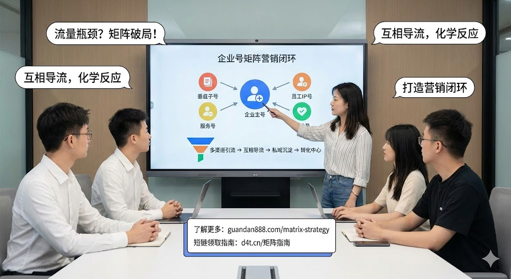 企业号单账号运营遇到流量瓶颈?账号矩阵组件能帮你突破增长天花板。做了大半年企业号,粉丝增长还是上不去?单个账号内容再优质,触达范围也有天花板。这时候需要账号矩阵来破局——通过多个账号形成组合拳,让不同类型用户都能找到适合的内容入口。关键不是简单多开几个号,而是让账号之间产生化学反应,互相导流,最终引导用户完成转化。