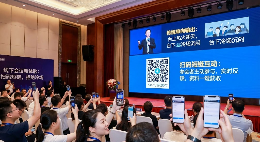 组织过线下会议的人都清楚,最尴尬的场景莫过于台上讲得热火朝天,台下却刷手机、打哈欠。会议结束后,精心准备的资料没人要,反馈问卷收不上来几份。这种单向输出的模式,让会议价值大打折扣。现在越来越多活动主办方开始用扫码短链来改变这个局面,让参会者从被动接收变成主动参与。