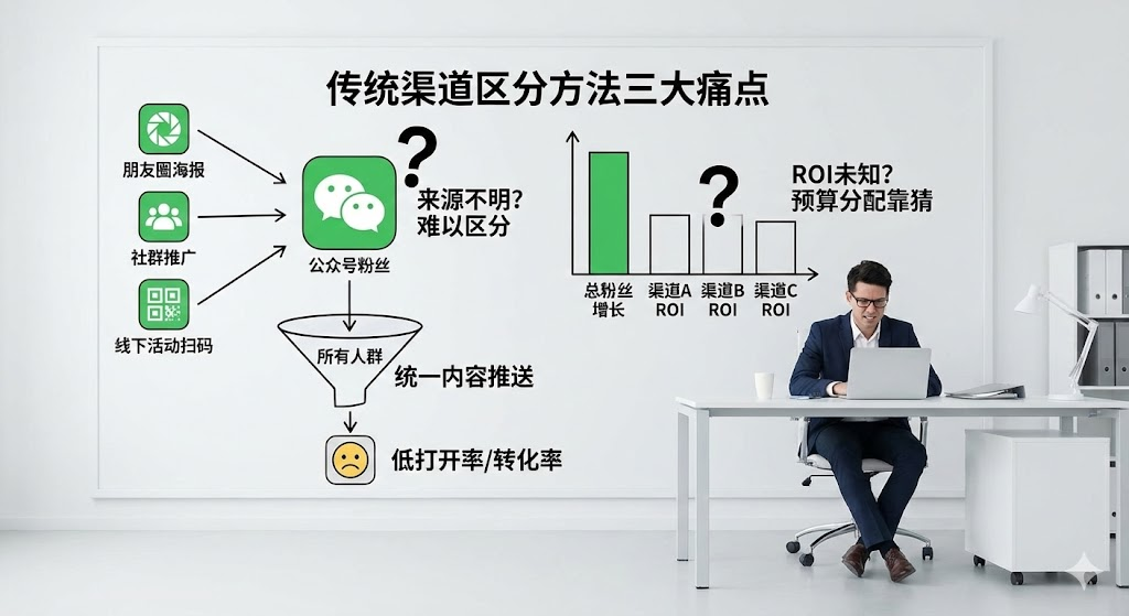 公众号运营到一定阶段,很多人会同时在抖音、百度、快手等多个平台投放广告。钱花出去了,粉丝也涨了,但问题来了:这些新增粉丝到底是从哪个渠道来的?哪个平台的广告效果更好?如果不能准确区分来源,后续的内容推送、活动策划都只能凭感觉,转化效果自然上不去。更头疼的是,当粉丝数量突破几千甚至上万后,想手动分类打标签?工作量大到让人崩溃。