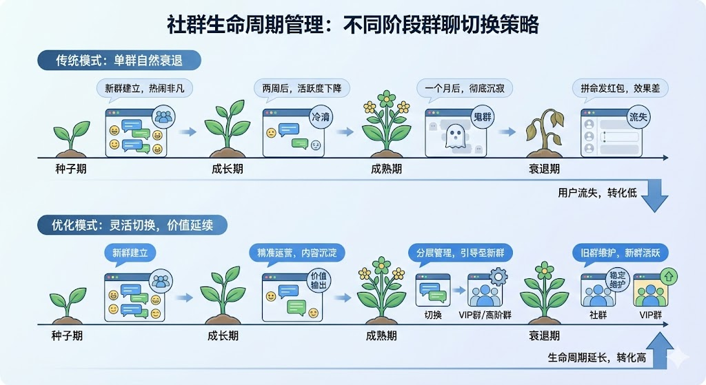社群生命周期管理:种子期、增长期、转化期群聊灵活切换
