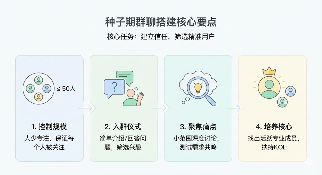 种子期的核心任务是建立信任和筛选精准用户。这个阶段别急着扩大规模,专注高质量互动才是关键。把群人数控制在五十人以内,人少才能保证每个人都被关注到,运营者也有精力回复每条消息。设置入群仪式,让新人做简单的自我介绍,或者回答一个与主题相关的问题。这不仅能筛选出真正感兴趣的用户,还能快速建立群内的互动氛围。