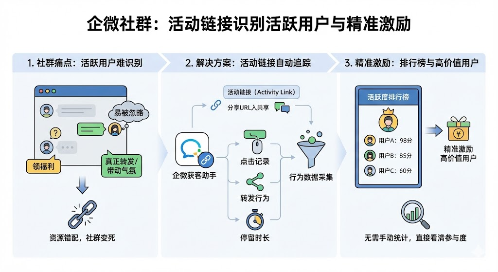 企微社群发起活动后,链接竟能自动识别谁最活跃还能精准激励