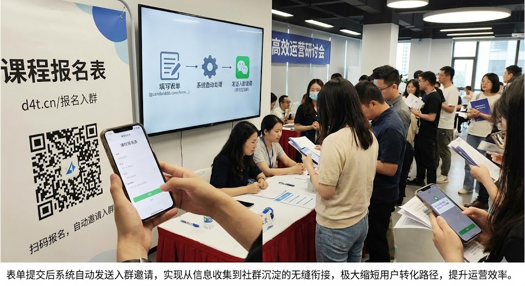 1. 用户提交表单后,系统立即识别并推送入群邀请,无需人工介入