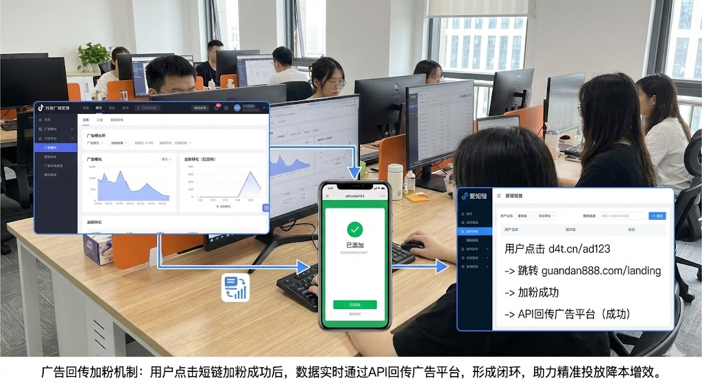 立即行动建议:选择支持回传功能的工具(如爱短链、企微助手等)测试一周,对比回传前后的获客成本和转化数据。根据行业经验,大部分团队能节省20%-30%预算,且无需技术团队深度开发,配置即用。广告回传加粉不是锦上添花,而是信息流投放的基础设施。在流量成本持续攀升的今天,让每一分广告费都有据可查、有迹可循,才是降本增效的正确姿势。