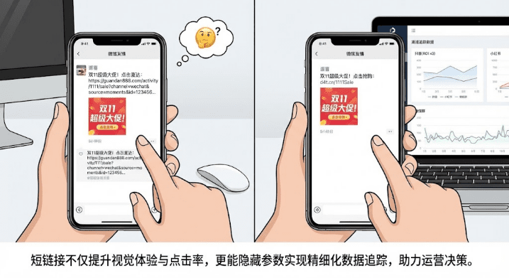 短链接看着干净,用户更愿意点。长链接在朋友圈显示不全,在微信群里占三行,用户看着就烦。行业数据显示,同一篇内容用短链接分享,点击率平均提升40%。这不是玄学,而是用户行为心理学的直接体现——简洁的链接降低了用户的决策成本,提高了点击意愿。