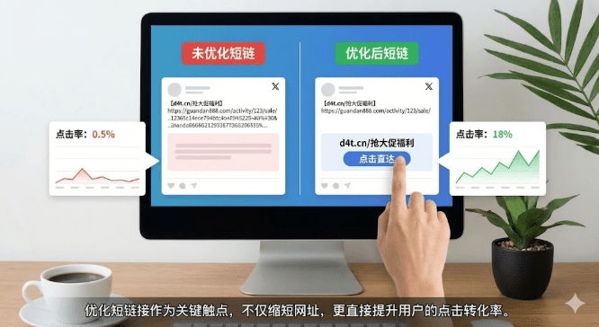 短链接生成了,数据也在看,但点击率就是上不去?问题可能不在内容本身,而在短链接这个被90%运营人忽略的触点。短链接不只是缩短网址,更直接影响用户的点击决策。本文提供3个立即可用的短链接优化技巧,帮你提升15%-30%的点击转化率。