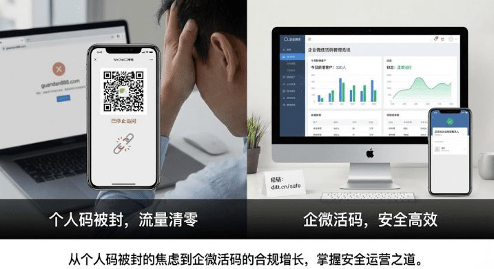 活码被封导致客户无法添加,私域流量瞬间归零?微信监管日趋严格,本文解析活码被封的3大触发机制,拆解朋友圈、公众号、付费广告3种场景的合规操作方法,教你用企业微信活码实现日加粉300+零封号,掌握多码分流、域名养护等实战技巧,让私域运营既高效又安全。
