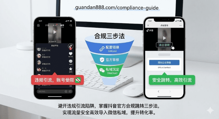 div class="ace-line ace-line old-record-id-doxcnhoTJQbuDDKiqQzbSlq4zbg">视频播放几万次,评论区全是「怎么联系」,真正加到微信的却不到5%?直接留微信号被限流,挂二维码直接封号——这是多数创作者都踩过的坑。抖音官方其实提供了合规的跳转通道,只是配置方法不够透明。本文直接拆解3步操作,当天就能把抖音流量导入微信私域,让播放量真正变成客户资源,避免限流封号风险。