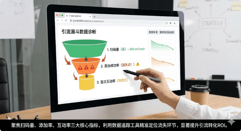 这个指标直接反映渠道质量和素材吸引力。同样投1000元,A渠道扫码200次,B渠道只有50次,说明A渠道人群更精准、素材更吸引人。如果某个渠道的扫码量持续低于行业均值,要么换渠道,要么立即优化投放素材。