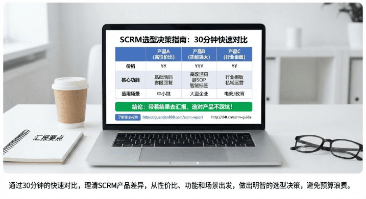 市面上企微SCRM产品一搜一大堆,功能介绍都说得天花乱坠,价格从几千到几万。买贵了老板心疼预算,买便宜了怕功能不够用,买错了还得背锅。本文用30分钟帮你理清主流SCRM的核心差异——哪个性价比高、哪个功能强、哪个适合你的业务场景,看完直接能拿着结论去汇报,不花冤枉钱。