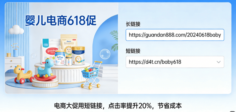 案例1:电商大促,短链接让点击率涨20%。某母婴电商618大促,在微博、小红书投了50万预算。前期用淘宝长链接(带一堆参数),数据惨淡——链接显示不全,用户以为是钓鱼网站,点击率只有1.8%。换成短链接工具生成的短网址后,支持自定义后缀功能,把活动名直接设置成abc.cn/618,看着正规。同时开启数据统计,实时监控各平台流量。
