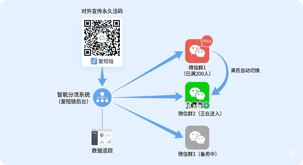 普通微信群二维码之所以总拖引流的后腿,本质是三个无法更改的原生限制: