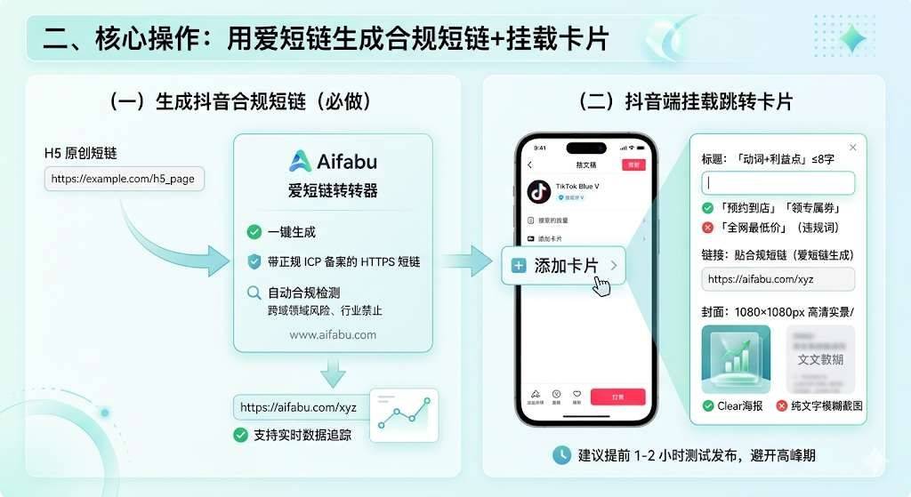 做抖音蓝V的你是不是愁死了?想引流到外部H5,要么跳转卡片挂不上、审核被拒,要么挂上了点击率低、转化差? 别慌,这篇攻略从权限开通、合规短链生成到卡片挂载全流程拆解,依托爱短链搞定合规痛点,帮你把抖音流量高效导入H5!
