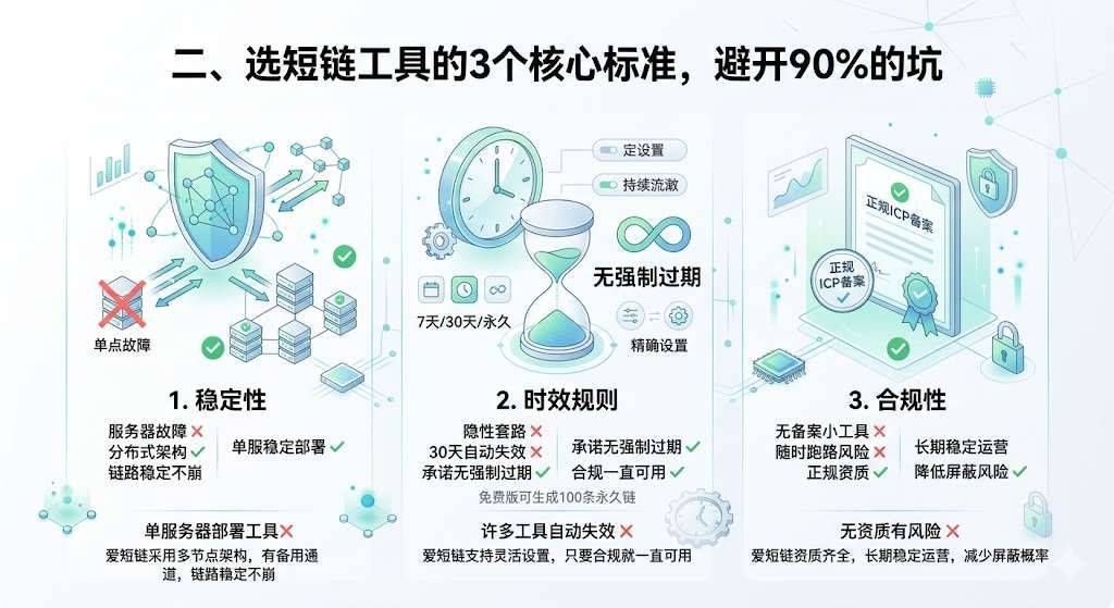 要从根源避免短链失效,选工具必须盯紧这3个核心维度: