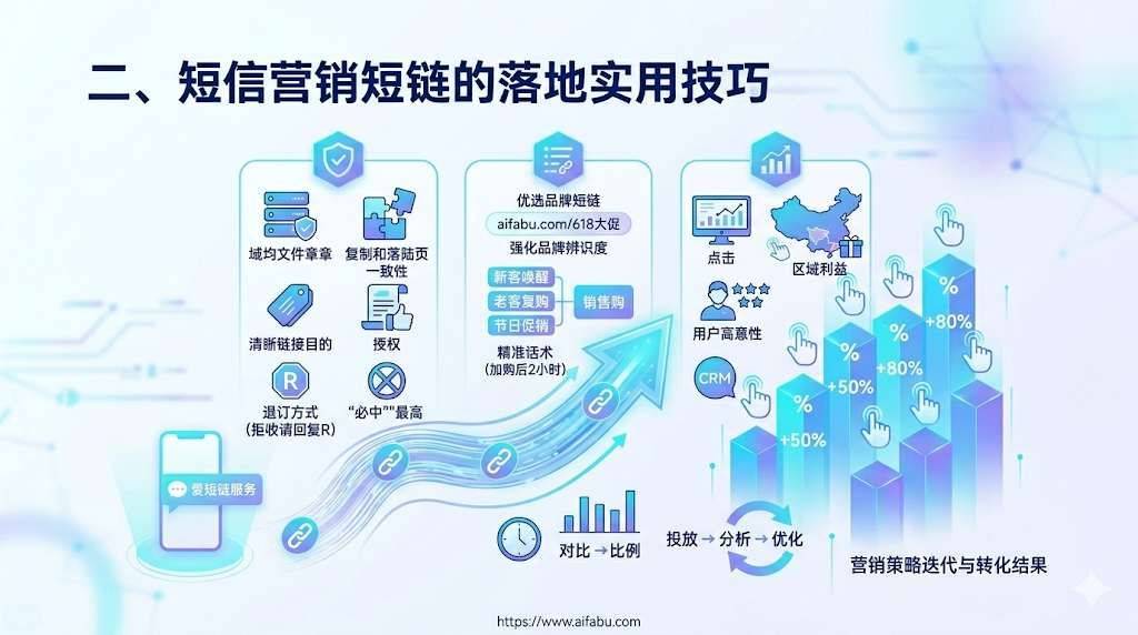 短信里放长链接,客户嫌麻烦不点、怕钓鱼不敢点,点击率始终上不去?别愁!本文就给你讲透短链接提效核心逻辑,教你落地实用技巧,再搭配合规靠谱的「爱短链」(官网:https://www.aifabu.com),把短信营销效果直接拉满。