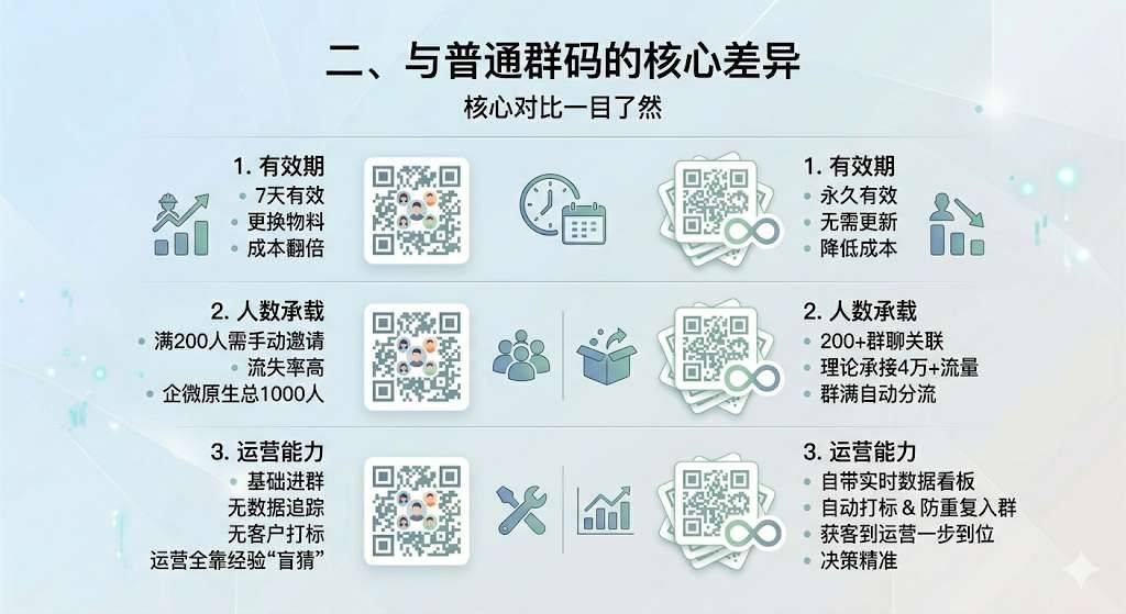 刚把群码印到门店海报、贴到自提柜,转头就遇“群满无法加入”的尴尬?辛苦投流、发圈引来的客户,眼睁睁流失,前期投入全白费! 别让引流打水漂,今天就说透永久群活码,帮你选对社群获客工具不踩坑。