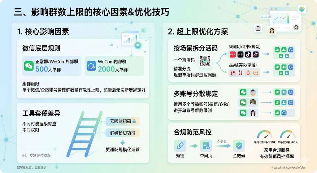 私域运营的同学是不是总被灵魂拷问:永久群活码到底能挂多少群?挂多了会不会触发风控?别慌!本文就给你说透不同工具的群数上限规则,重点拆解爱短链的核心玩法,帮你合理规划活码布局,彻底告别拉新到一半掉链子的尴尬。