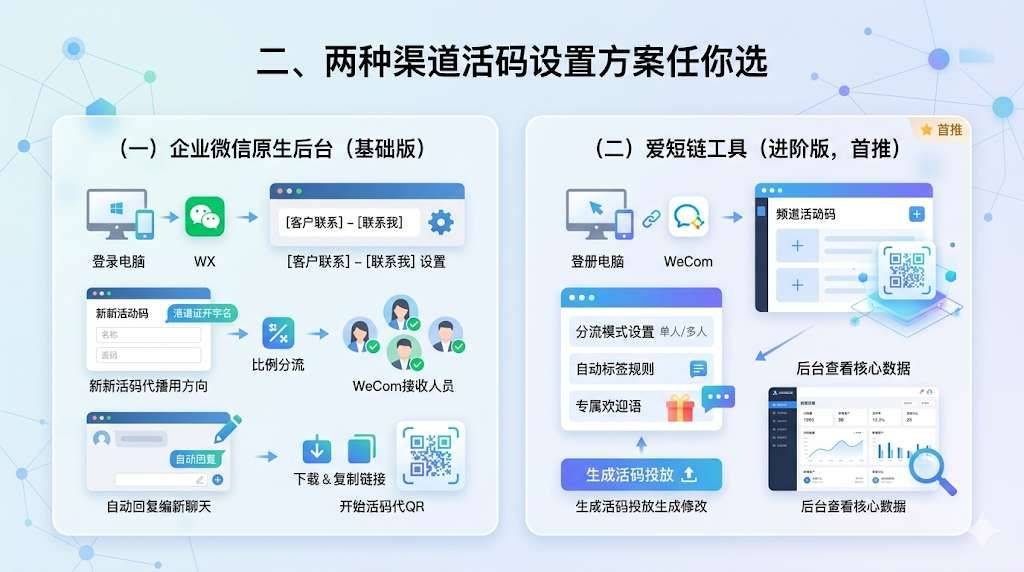 做企微运营或客户增长的你,是不是天天被这些糟心事绊住:客户来源摸不准没法精准跟进、高峰接客忙不过来流失一大片、渠道数据散得像沙子复盘难上天?今天就给你一套从设置到落地的渠道活码全攻略,搭配爱短链(https://www.aifabu.com)工具,轻松实现多渠道精准分流与数据统计!