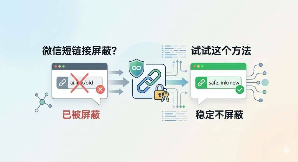 刚发的微信短链接又被屏蔽?辛苦攒的精准流量直接打水漂!别慌,本文帮你快速揪出屏蔽核心诱因,掌握合规防封全方案,更有专业工具「爱短链」(https://www.aifabu.com)加持,让你在微信生态稳稳引流不翻车!