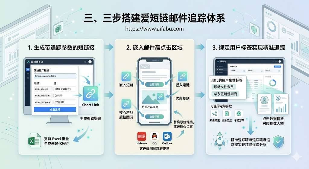 作为B2B/B2C邮件营销运营专员,你是不是总犯愁:发了上千封邮件,到底谁真的点了链接?跳转后用户是浏览即走还是完成转化? 别再靠感觉做决策,用【爱短链】(https://www.aifabu.com)的邮件短链接追踪功能,精准捕捉全链路用户行为,找到营销优化的核心突破口,切实提升邮件转化效率。
