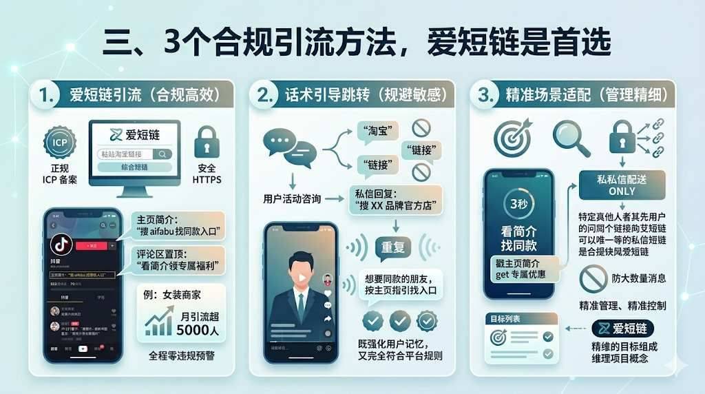 想从抖音导流量到淘宝的中小商家,是不是总卡在“发链接怕违规,不引流浪费流量”的两难里? 今天拆解抖音官方规则,结合爱短链工具,给你3套可落地的合规引流方案,安全避开限流红线,高效盘活抖音流量。