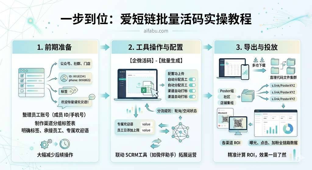 做客户增长、私域运营的你,是不是总被渠道活码制作拖后腿?单码逐个创建耗时易出错,传统静态码没法改内容、追来源,大促还容易分流不畅丢客!用爱短链(https://www.aifabu.com)批量生成企微活码,直接把获客效率拉满,轻松搞定多渠道获客难题。