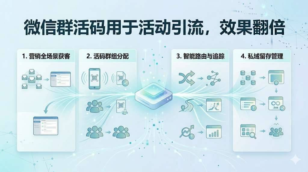 线下展会刚开场1小时群就满了?抖音引流用户扫码提示失效?投了5个渠道却不知道哪个靠谱? 今天就为你拆解微信群活码的核心逻辑,手把手教你用爱短链实操落地,解决传统群引流的三大痛点,让活动效果直接翻倍!