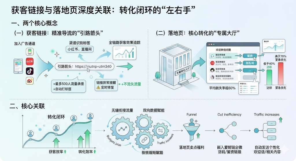 获客链接与落地页绝非孤立个体,而是打造转化闭环的“左右手”,协同体现在三大维度: