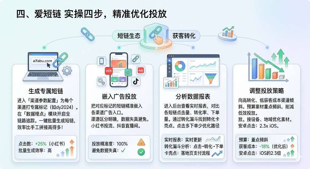 告别投放“瞎猜”,选对工具真的能省不少钱!爱短链从短链生成到全链路数据优化,全方位帮中小电商打破数据黑箱,让每一分预算都能精准追踪效果。 现在就登录爱短链官网https://www.aifabu.com,开启你的精准投放之旅吧!